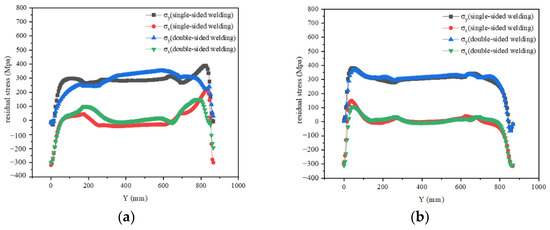 Residual stress distribution in the y direction. (a) Path1; (b) Path2.