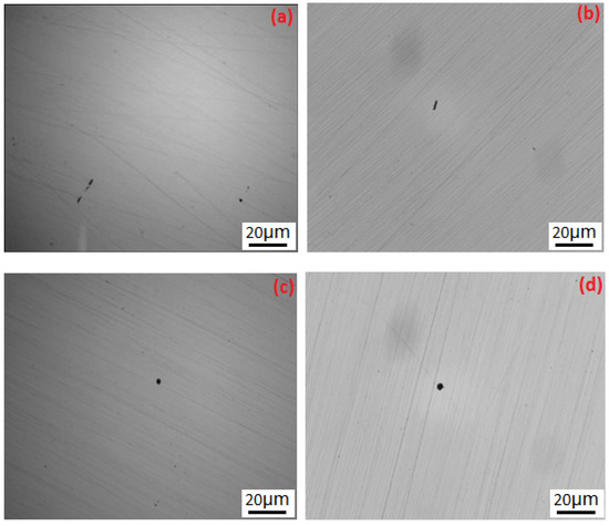 Inclusions of 13Cr stainless steel were observed and analyzed by a research-grade digital microscope model Axio Scope A1 after the samples were polished. The results show that the inclusion shapes were strip and ring. Strip shape inclusions are shown in Figure 3a,b. Ring shape inclusions are shown in Figure 3c,d. It can be speculated that the inclusions of ring and strip shapes are aluminum oxide inclusions and metallic phase inclusions according to the Chinese standard GB/T 10561-121 2005. The result of the observation is shown in Figure 3.