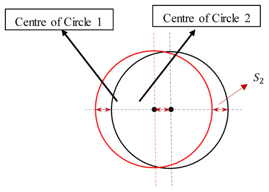 As can be seen in Figure 5, two different parts for the contact area, for which one of them belongs to circle one and another one belongs to circle two, will be achieved. Each one these areas can be considered as an arc segment area.