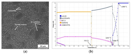 - Püttgen, W.; Hallstedt, B.; Bleck, W.; Uggowitzer, P.J. On the Microstructure Formation in Chromium Steels Rapidly Cooled from the Semi-Solid State. Acta Mater. 2007, 55, 1033–1042. [Google Scholar] [CrossRef]