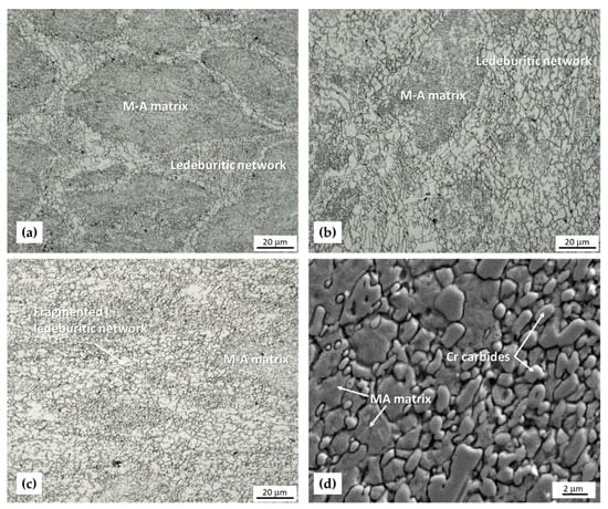 - Rubešová, K.; Pekovic, M.; Jirková, H. Innovative Process to Eliminate Ledeburite Network in Tool Steel. Manuf. Technol. 2017, 17, 940–945. [Google Scholar] [CrossRef]