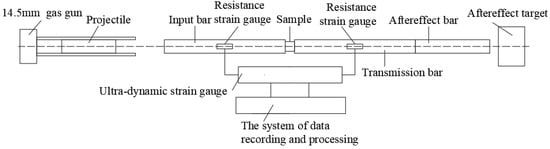 In order to study the mechanical behaviors of FeNiCoCr HEAs with different annealing temperatures at high strain rates, the dynamic compression tests at different strain rates were carried out at room temperature using an split Hopkinson pressure bar (SHPB) (Nanjing University of Science and Technology, Nanjing, Jiangsu, China). As shown in Figure 3, the sample was clamped between the input bar and the transmission bar. The impact velocities of the impact bar were adjusted by the pressure of the chamber supplied by the nitrogen cylinder. The compressive stress wave was generated when the impact bar hit the input bar. When the stress wave reached the end of the sample, the reflected wave and transmitted wave were generated in the input bar and transmission bar, respectively. The wave propagation was recorded by resistance strain gauges attached to the rods, while collected data were amplified by the ultra-dynamic strain gauge.