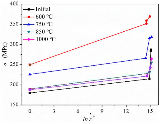 Strain rate effect of FeNiCoCr HEAs annealed at different temperatures.