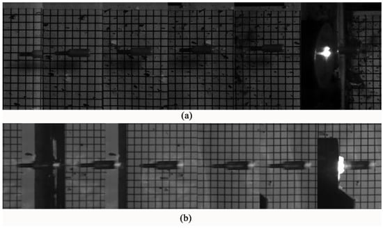 Figure 13 shows the flight paths of typical LRPs at a similar velocity captured by the high-speed camera. The flying attitude and landing posture of the projectiles were maintained well, while the projectiles hit the steel targets vertically.