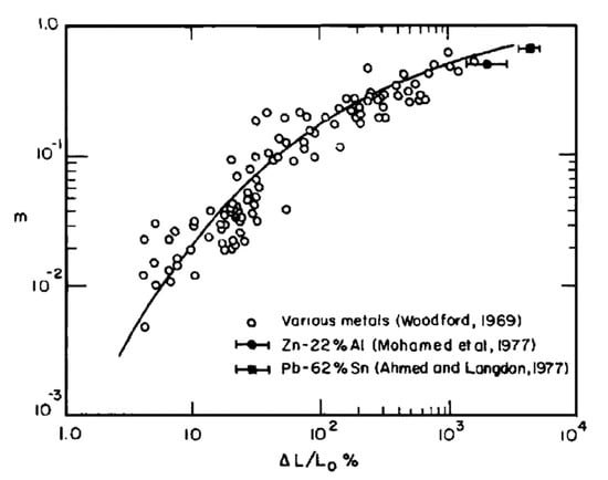 - Langdon, T.G. The mechanical properties of superplastic materials. Metall. Trans. A 1982, 13A, 689–701. [Google Scholar] [CrossRef]