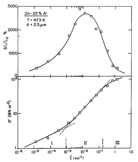 - Ishikawa, H.; Mohamed, F.A.; Langdon, T.G. The influence of strain rate on ductility in the superplastic Zn-22% Al eutectoid. Phil. Mag. 1975, 32, 1269–1271. [Google Scholar] [CrossRef]
