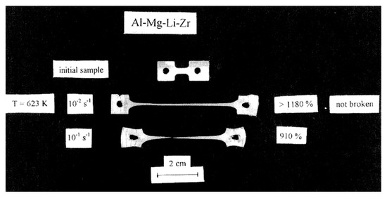 - Valiev, R.Z.; Salimonenko, D.A.; Tsenev, N.K.; Berbon, P.B.; Langdon, T.G. Observations of high strain rate superplasticity in commercial aluminum alloys with ultrafine grain sizes. Scripta Mater. 1997, 37, 1945–1950. [Google Scholar] [CrossRef]