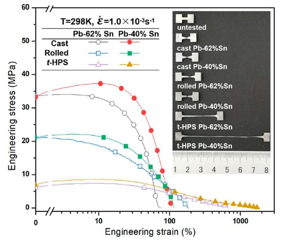 - Lin, K.; Li, Z.; Liu, Y.; Ma, E.; Wang, J.T.; Langdon, T.G. Exploiting tube high-pressure shearing to prepare a microstructure in Pb-Sn alloys for unprecedented superplasticity. Scripta Mater. 2022, 209, 114390. [Google Scholar] [CrossRef]