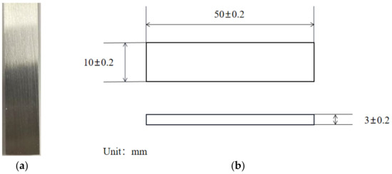 The metal used for the experiments was prepared with reference to the “Laboratory Test Method for Uniform Corrosion of Metallic Materials by Total Immersion”. 80S steel was physically demonstrated with machining specifications, as shown in Figure 1; instrumentalized with a milling machine; and polished with a grinder to remove the original metal surface layer and improve the surface finish.