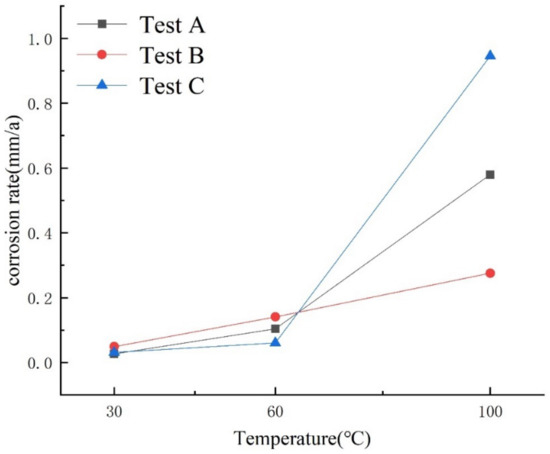 The corrosion rate was calculated using the weight-loss method, and the results are shown in Figure 6.