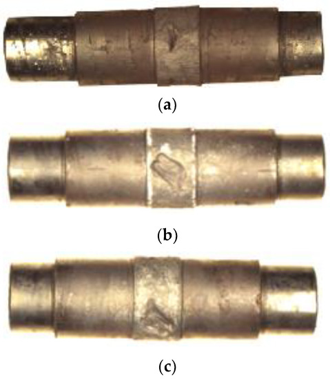The rolled shafts with hollow defect. (a) Defect 1; (b) Defect 2; (c) Defect 3.