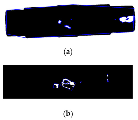 After removing the outer contours in Figure 7a,b, polygon fitting and rectangle fitting are performed respectively, and the results shown in Figure 8 can be obtained.