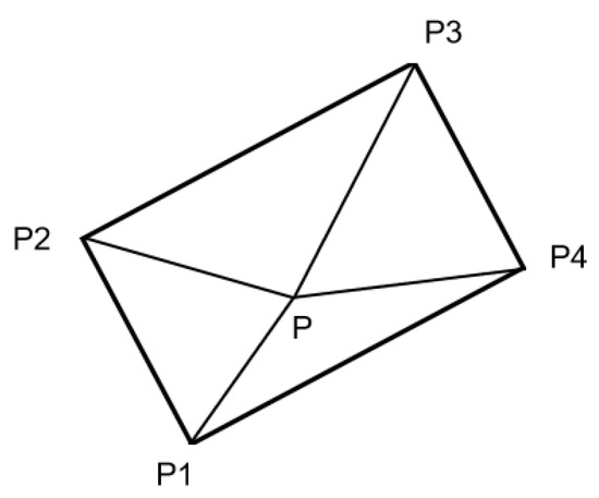 Where are the four vertices of the rectangle at the bottom, left, top and right, and P is a point on the image. If point P is inside the rectangle, the above points will meet the following equations.