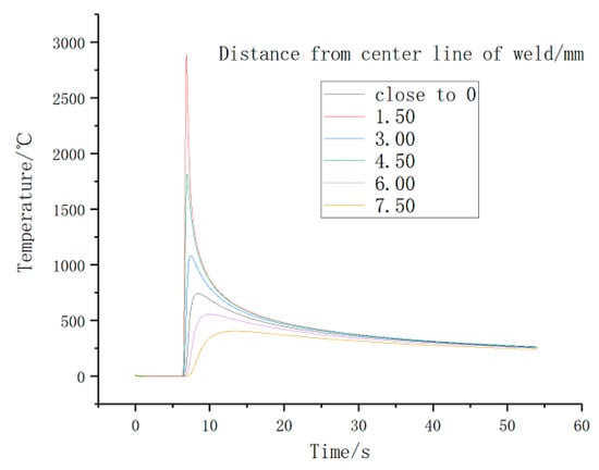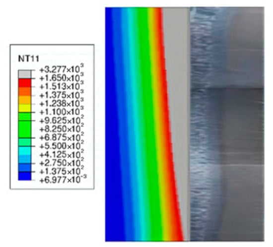 | Temperature T (°C) | Poisson’s Ratio | Specific Heat C (J/kg °C) | Elastic Modulus E (MPa) × 105 | Thermal Conductivity λ (W/(m °C)) | Yield Stress σ (MPa) × 105 | Thermal Expansion Coefficient K (1/°C) × 10−6 |
