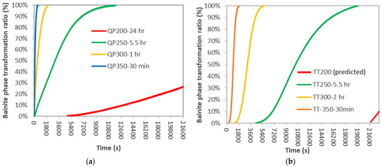 Bainite transformation ratio: (a) quenching partitioning; (b) isothermal.