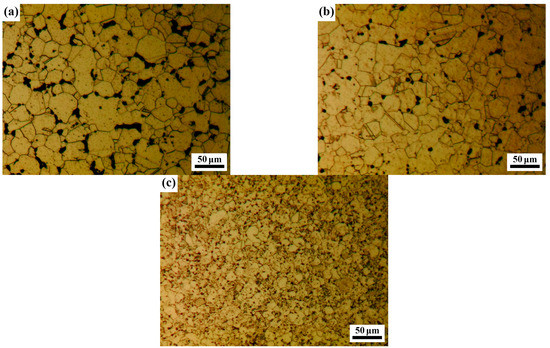 Microstructure of the FGH97 superalloy with different volumes of porosity after etching; (a) Ni1#, (b) Ni2#, and (c) Ni3#.