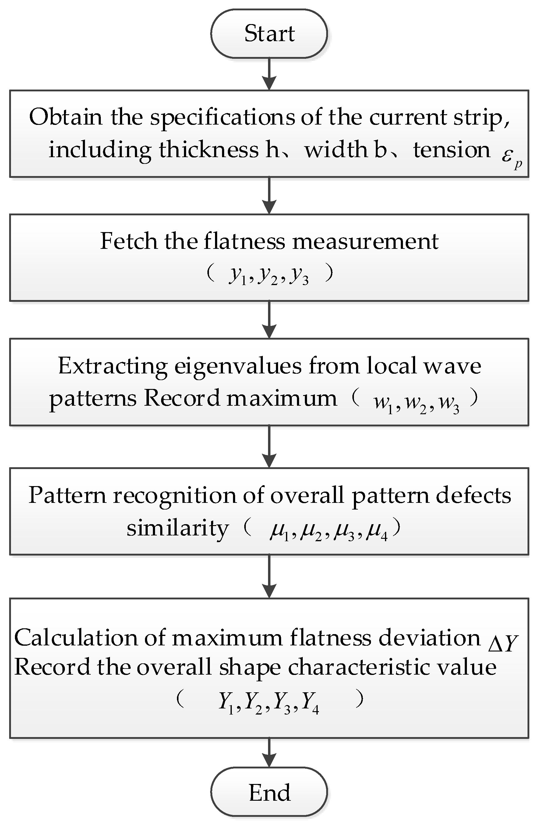 - Bao, R.R.; Zhang, J.; Li, H.B.; Jia, S.H.; Liu, H.J.; Xiao, S. Flatness pattern recognition of ultra-wide tandem cold rolling mill. Chin. J. Eng. 2015, 37, 6–11. [Google Scholar]