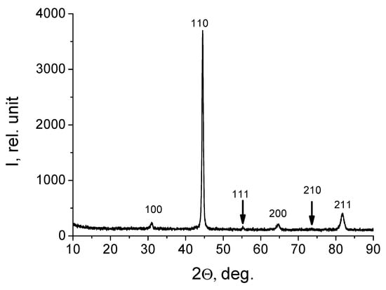 Fragment of the HEA X-ray diffraction pattern before modification (arrows indicate indices).