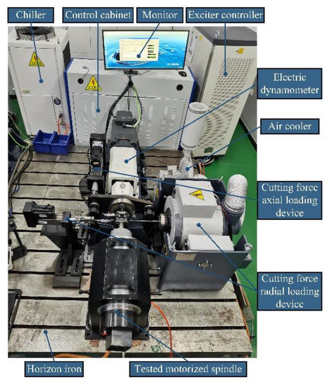 Based on Equation (37), the technical indicators of the tested motorized spindle, and the corresponding actual test equipment (