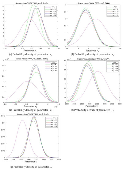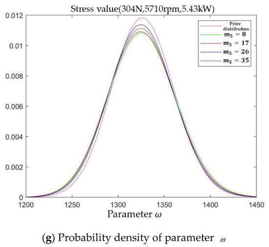 m7 = 8 has a certain chance due to the small amount of data, and usually has a certain distance between the true value of the parameter. As the number of tests increases (i.e., the amount of data increases), the chance of the probability density function is gradually eliminated, and the probability density function of the posterior distribution of the model parameters is gradually closer to the true value. At the end of this stress level test,