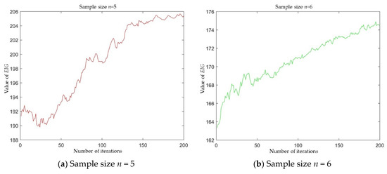For the calculation of information entropy, the unit of information quantity is different when the base of the log in the calculation Equations (31)–(33) take different values. For example, when the log base is 2, the unit is bit; when the log base is e, the unit is (nat). Although different values of the log base will lead to different units of information quantity, as long as the base of the log is greater than 1, it can indicate the size of information entropy. Since the expression of the log-likelihood function (Equation (17) in the previous article is with e as the base the log in Equations (31)–(34) are the logarithm with e as the base, i.e., log = ln, in order to keep the consistency of the expression before and after the article and to reduce the calculation process.