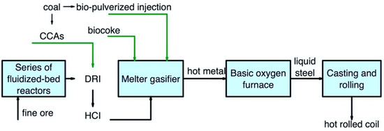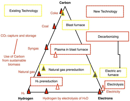 - Hasanbeigi, A.; Arens, M.; Price, L. Alternative Emerging Ironmaking Technologies for Energy-Efficiency and Carbon Dioxide Emissions Reduction: A Technical Review. Renew. Sustain. Energy Rev. 2014, 33, 645–658. [Google Scholar] [CrossRef]
