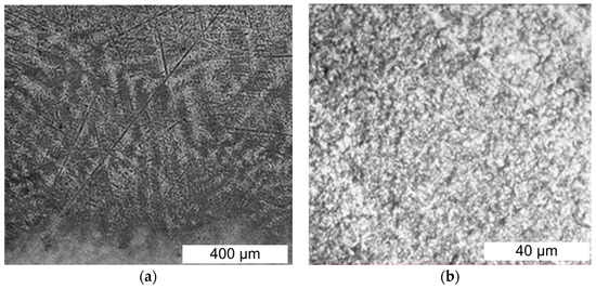 Microphotographs of the Ti-20Nb-10Ta-5Zr surface: (a) after fabrication; (b) after polishing. Scale bar is represented as a white rectangle. The width of the corresponding rectangle (µm) is given inside it.