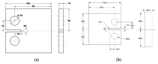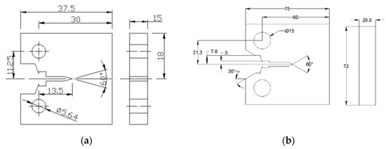 Specimen design of FCGR test: (a) 3.5Ni; (b) 9Ni (Unit: mm).