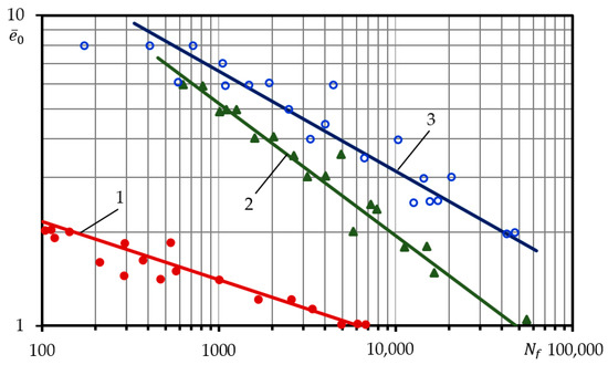 According to [38], statistical processing of the results of the cyclic durability test has involved the so-called threshold sensitivity measures. These measures correspond to the minimum and maximum number of durability cycles in which specimen failure may occur. It should also be noted that experimental and theoretical results tend to correspond better to each other, and the errors of statistical processing of results decrease, where these measures have been used during the statistical processing of test results.