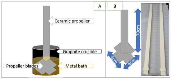 Position of propeller in metal bath (A) and propeller dimensions (B).