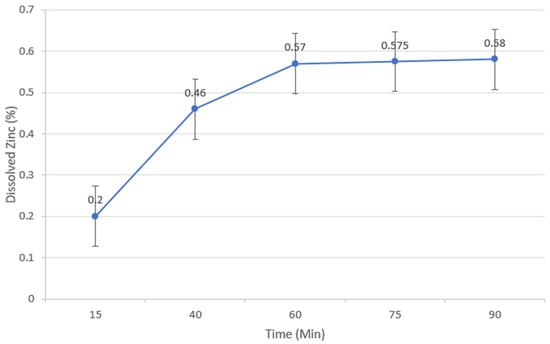 The graph below shows the zinc dissolution and effects of holding time without agitation. This was experimented to evaluate the behavior of zinc dissolution depending upon the holding time (Figure 11).