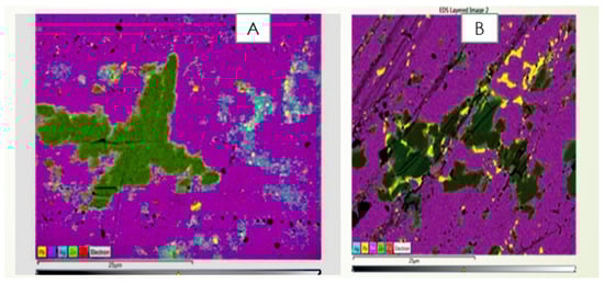 Enriched tin silver alloy FE-SEM (EDS) (A); mapping and point analysis (B).