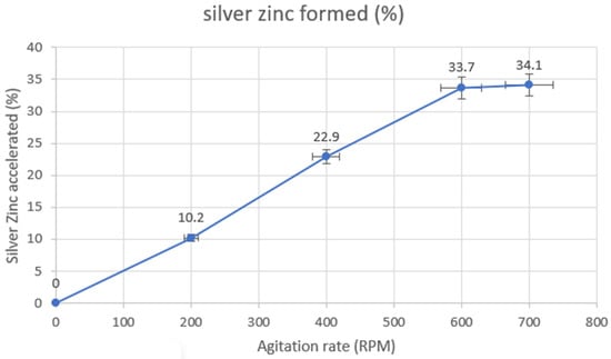 Silver separation efficiencies were evaluated at different agitation times and rates (Figure 15). This was done by measuring the separation efficiency of zinc silver at different agitation times with respect to the RPM used. To obtain the separation efficiency, the formula below was used: