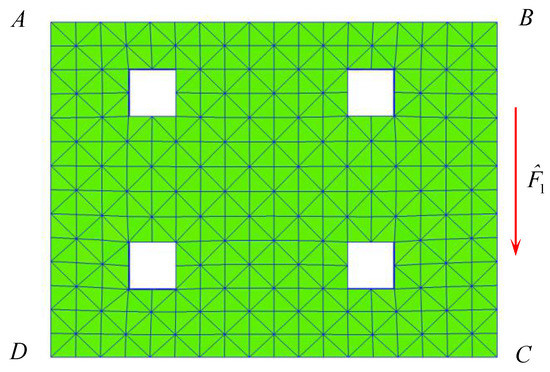 The mechanical performance analysis of perforated plates is also suitable for several common plate models. For example, a new weak Galerkin finite element method is analyzed for the Reissner–Mindlin plate model, this method achieves uniform convergence with respect to plate thickness (the so-called locking-free) without any projection, reduced integration [23]. In reference [24], the obstacle problem in Kirchhoff–Love plate model is simulated by variational inequality. Under the assumption of the regularity of the solution, the optimal order error estimation under the discrete energy norm is derived. In addition, the mechanical prediction problem also includes crack growth. For aircraft fatigue life prediction and crack growth modeling, the simulation results predict the contact force and shear deformation [25]. The most common method for locating public facilities is the micro-tunnel model, but prediction of the total jacking force is very complex. a probabilistic observational approach are proposed, which can be used to predict the jacking force of the micro-tunnel belongs to the prediction within the framework of probability. The error depends on the proper degree of the probability model [26,27]. The results show that this method is very useful for the monitored field data and highlights a significant.