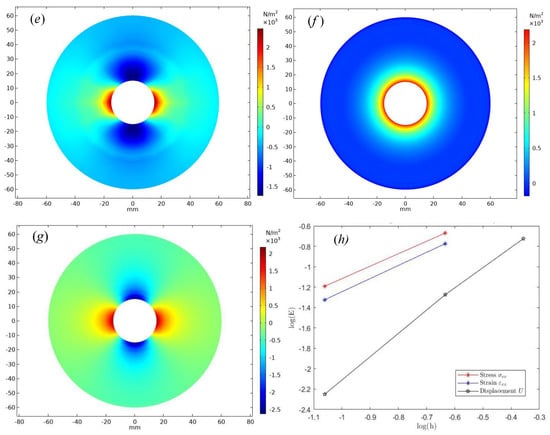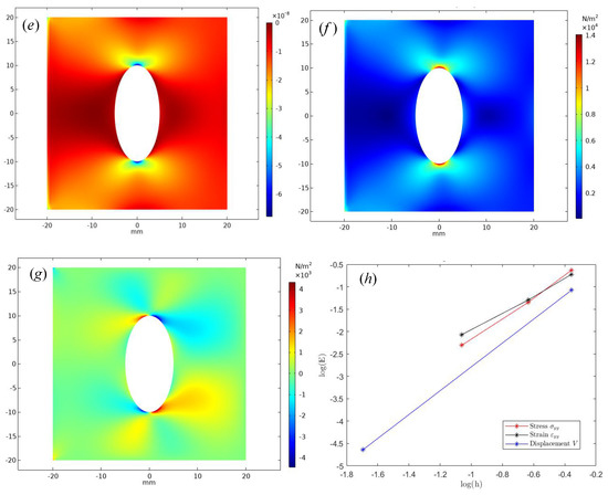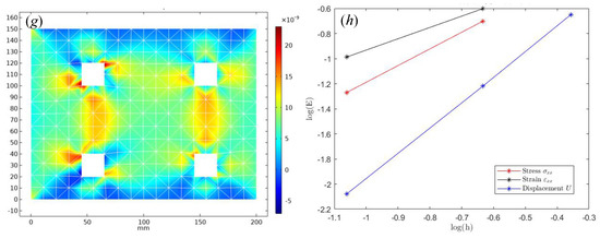For example, the convergence order of the constant strain element CST should be , which can also explain that when the finite element mesh size is reduced by half, the error becomes 1 / 4 of the previous mesh state [51,52]. when the approximate strain under the constant strain element satisfies the , the error estimation of the strain is . The stress is , the corresponding error estimation is .