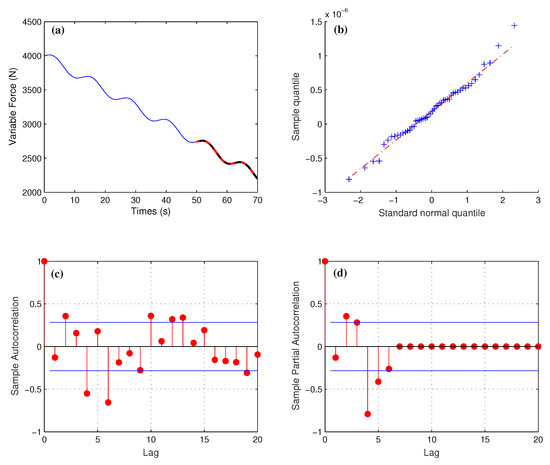 In this paper, an autoregressive integrated moving average (ARIMA) based model red which combines both statistical and mechanical knowledge, are developed to predict the variable force. ARIMA model is a kind nonstationary prediction model composed by AR and MA models, which was systematically proposed by Box and Jenkins in Ref. [28]. The data generated by predicting the change over time are often called a random sequence, and a suitable mathematical model can be established to estimate future data based on historical data values. The parameter of the ARIMA model could be obtained by maximum likelihood estimation or least squares estimation. This algorithm has been widely used in finance, commercial sale prediction and engineering [29,30,31], it has achieved a good prediction results. However, it is very rare to introduce this method into the prediction of deformation change in mechanical problems, which also highlights the importance of our work.
