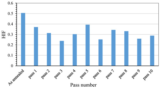 HIF for the as annealed sample and the first pass to tenth pass.