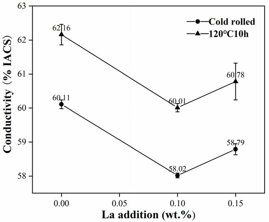 Conductivity of the foil alloys with different La content.