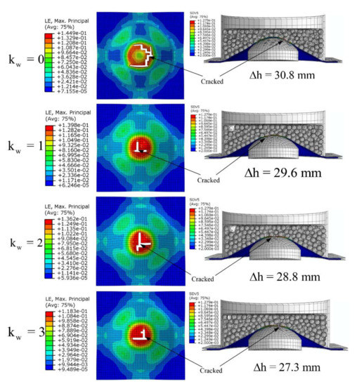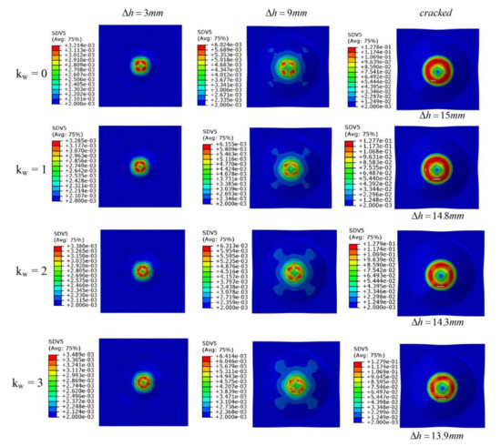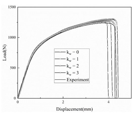 From Equations (9) and (10), it can be seen that the plate is in a lower stress triaxiality and the stress triaxiality decreased with the radius of rigid balls decreasing. In order to solve the problem that the GTN damage model cannot accurately describe material damage at low stress triaxiality, Nahshon and Hutchinson introduced a phenomenological extension to the porosity evolution equation.