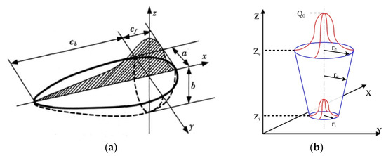 Heat source model. (a) Double ellipsoidal heat source model [14]; (b) Cone-shaped heat source model [15].
