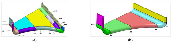 The model of the lower port stub. (a) The model with all welds; (b) The model with the welds of A2, A4, A6, A8, and A12.