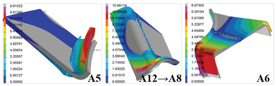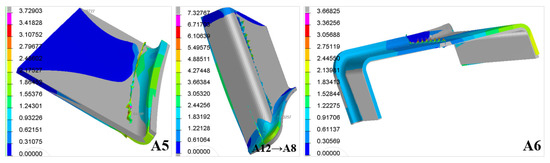 The deformation cloud diagram of A5, A8 and A12, and A6.