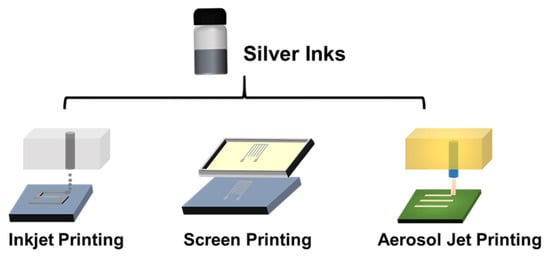- Cano-Raya, C.; Denchev, Z.Z.; Cruz, S.F.; Viana, J.C.; Cano-Raya, C.; Denchev, Z.Z.; Cruz, S.F.; Viana, J.C. Chemistry of Solid Metal-Based Inks and Pastes for Printed Electronics—A Review. Appl. Mater. Today 2019, 15, 416–430. [Google Scholar] [CrossRef]