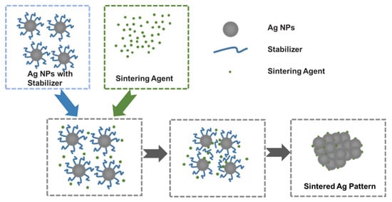 - Jung, I.; Jo, Y.H.; Kim, I.; Lee, H.M. A Simple Process for Synthesis of Ag Nanoparticles and Sintering of Conductive Ink for Use in Printed Electronics. J. Electron. Mater. 2011, 41, 115–121. [Google Scholar] [CrossRef]