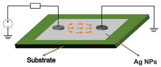 - Moon, S.-J. The Effect of Temperature on the Electrical Properties of Inkjet-Printed Silver Nanoparticle Ink during Electrical Sintering. J. Nanosci. Nanotechnol. 2013, 13, 6174–6178. [Google Scholar] [CrossRef] [PubMed]