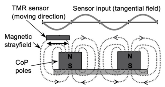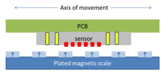 Schematic illustration of the sensor and scale arrangement. Sensor is sensitive to the tangential field and moves at a fixed working distance.