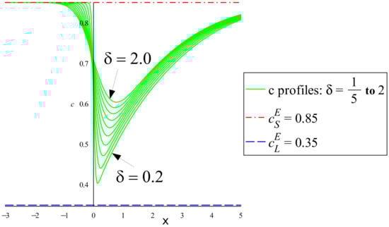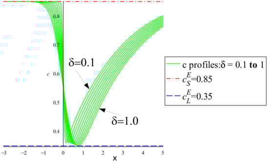 which is near zero for x 0 and near unity for x 0 with a transition region in proportion to δ about x = 0 . The phase profile, Equation (13), thus satisfies just the surface contributions to the phase-field, Equation (12). This may prompt the question: How is the phase profile controlled in general, say, to match a specific profile? Equation (13) may be rearranged