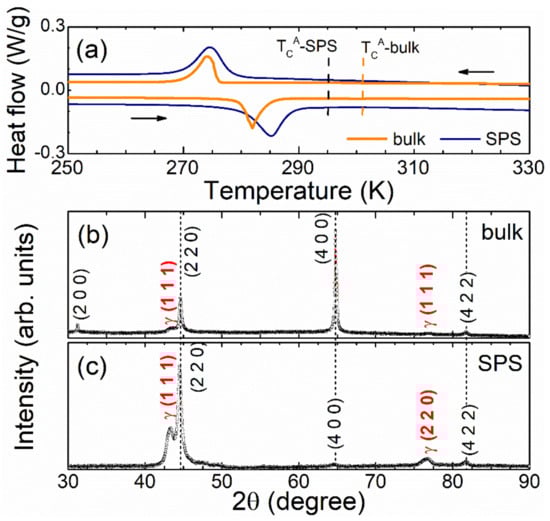 | SPS | DSC | 278 | 262 | 279 | 290 | 11 | 5.5 | 19.1 | Ni55.8±0.1Fe12.0±0.1Mn6.9±0.1Ga25.3±0.1 | |