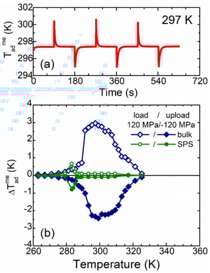 - Castillo-Villa, P.O.; Mañosa, L.; Planes, A.; Soto-Parra, D.E.; Sánchez-Llamazares, J.L.; Flores-Zúñiga, H.; Frontera, C. Elastocaloric and magnetocaloric effects in Ni-Mn-Sn(Cu) shape-memory alloy. J. Appl. Phys. 2013, 113, 053506. [Google Scholar] [CrossRef] [Green Version]