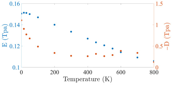 E and D were obtained from the MD simulation results for different temperatures.